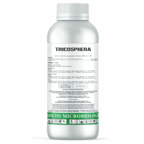 Trichoderma asperellum, cepa BV10. Ação de antibiose, predação e parasitismo contra patógenos tornam o Tricosphera uma biossolução fundamental no manejo de doenças.